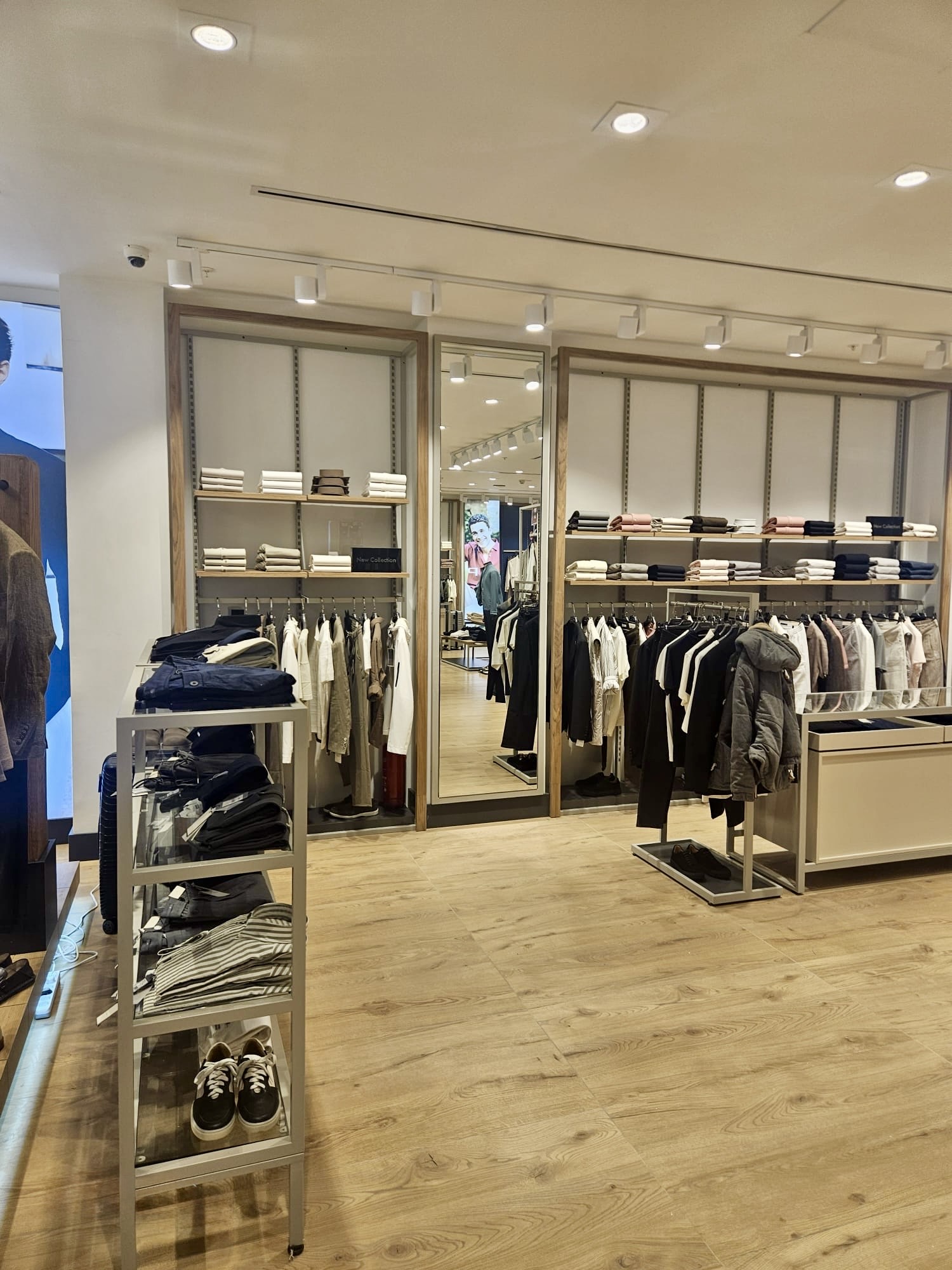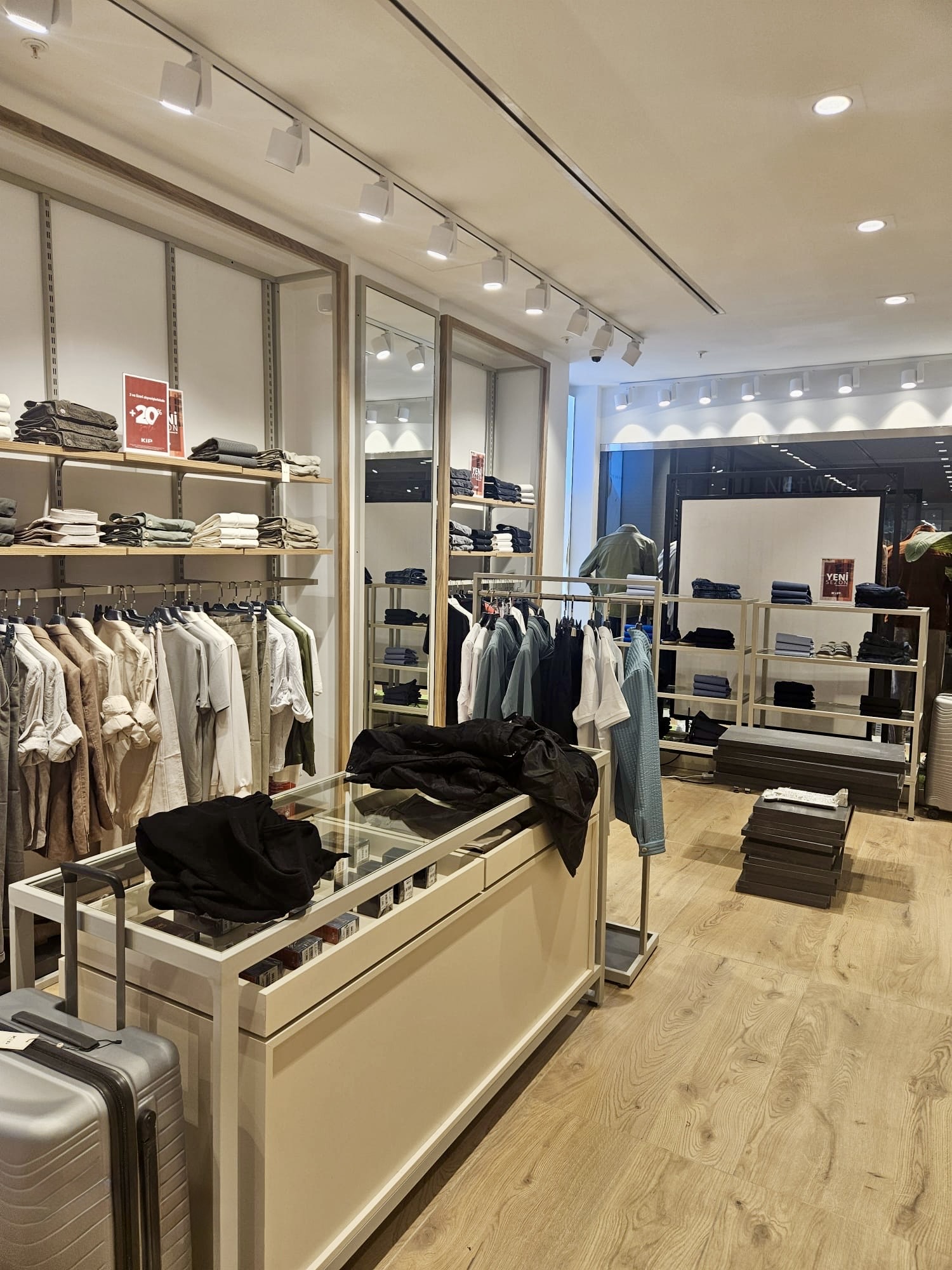 İzmir İstinye Park AVM'deki Under Armour mağazası tezgah, raf ve askılıkları.