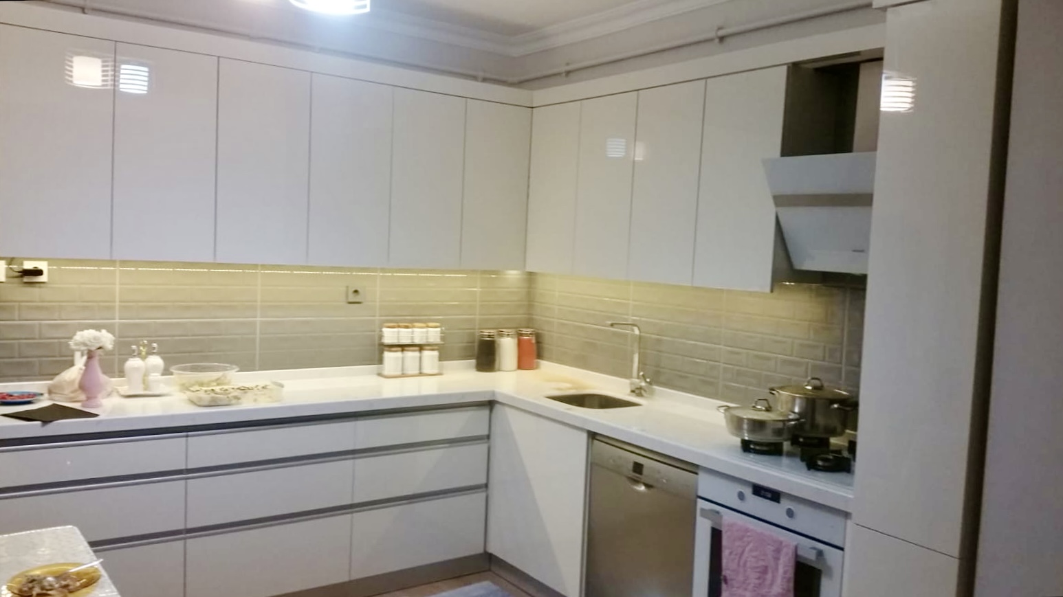Hem dekoratif hem de anti-bakteriyel bir malzeme olan corian ile ürettiğimiz mutfak tasarımlarından bazıları.