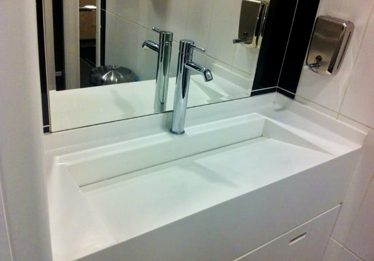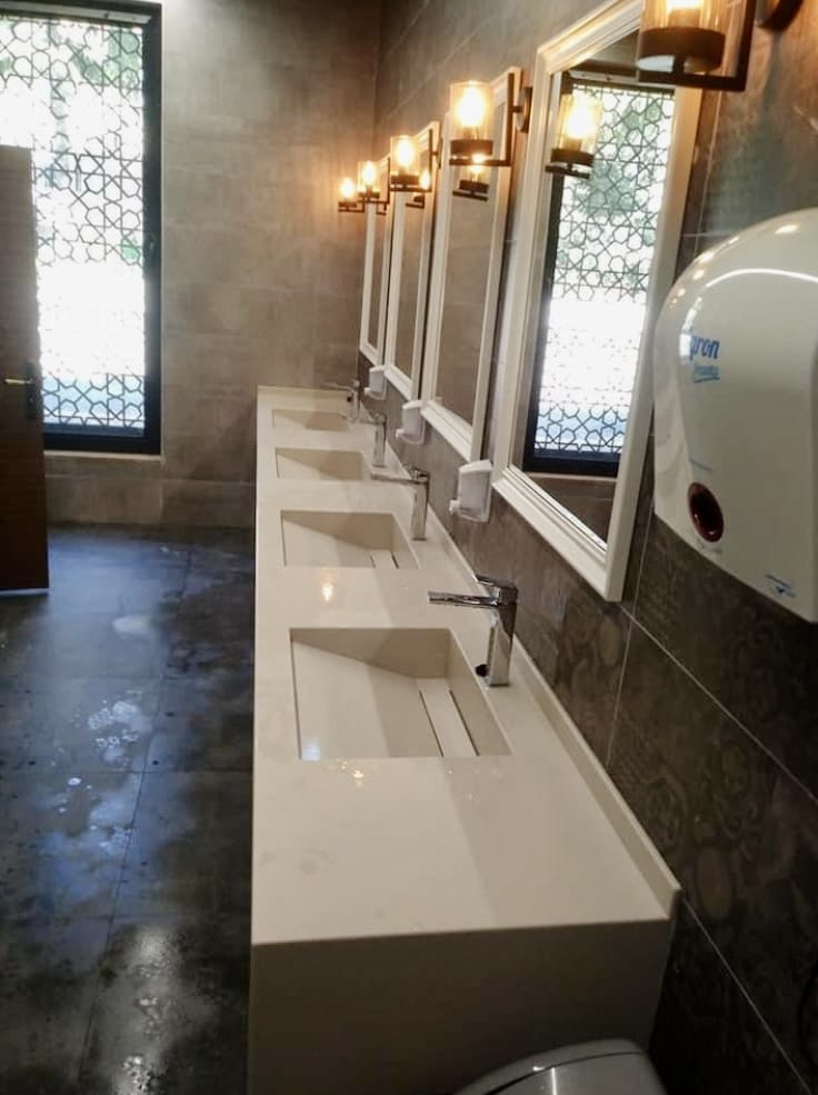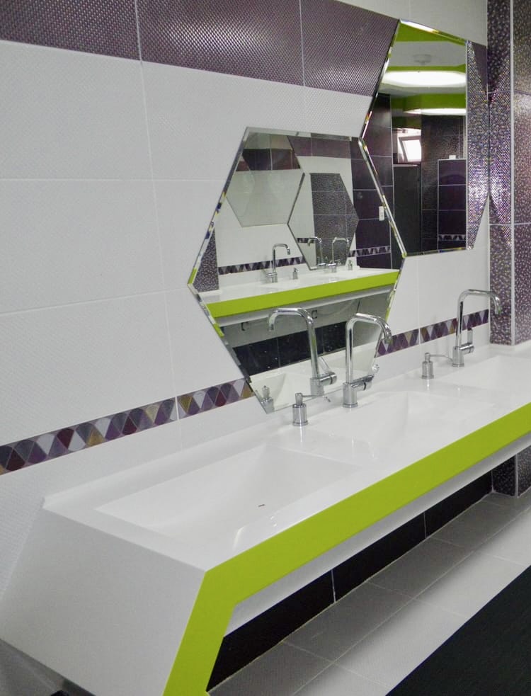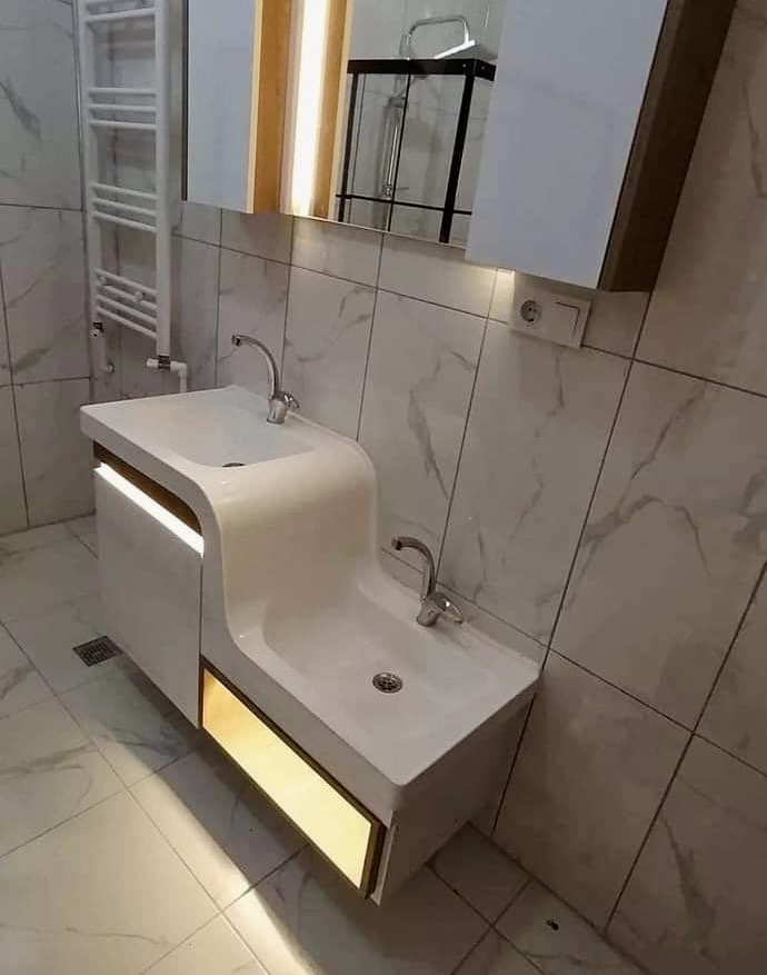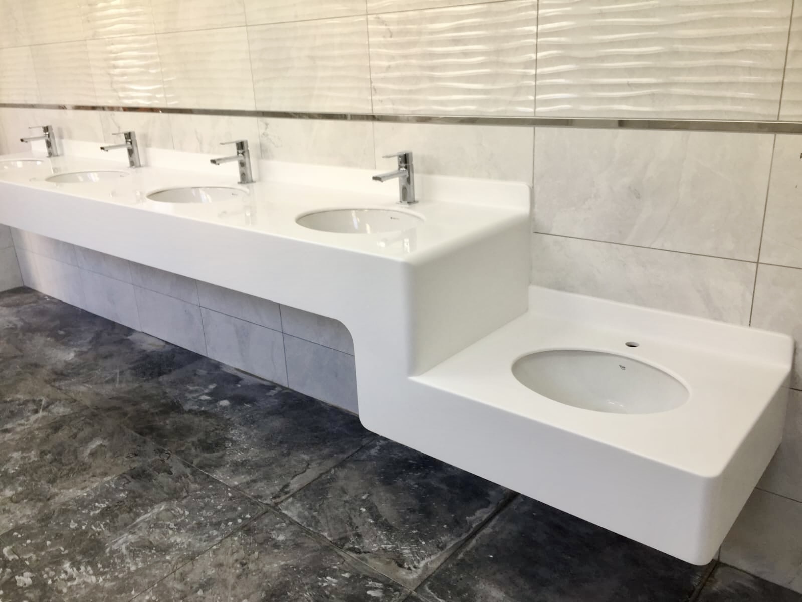 Hem dekoratif hem de anti-bakteriyel bir malzeme olan corian ile ürettiğimiz banyo tasarımlarından bazıları.