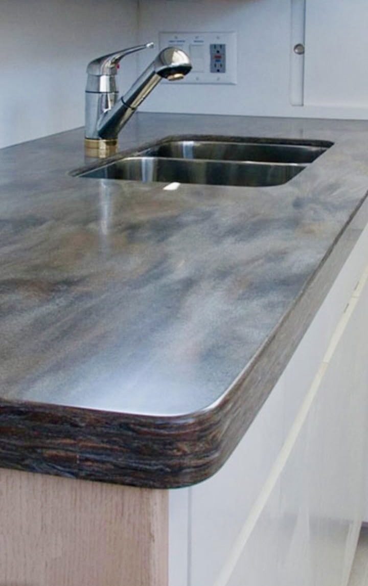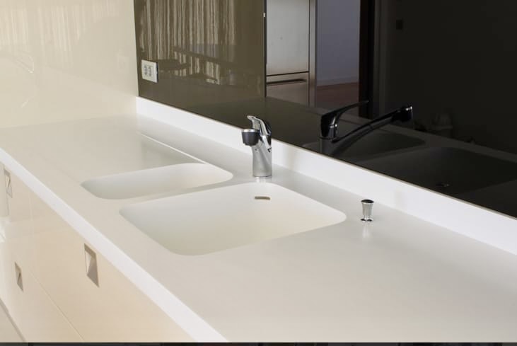 Hem dekoratif hem de anti-bakteriyel bir malzeme olan corian ile ürettiğimiz banko tasarımlarından bazıları.