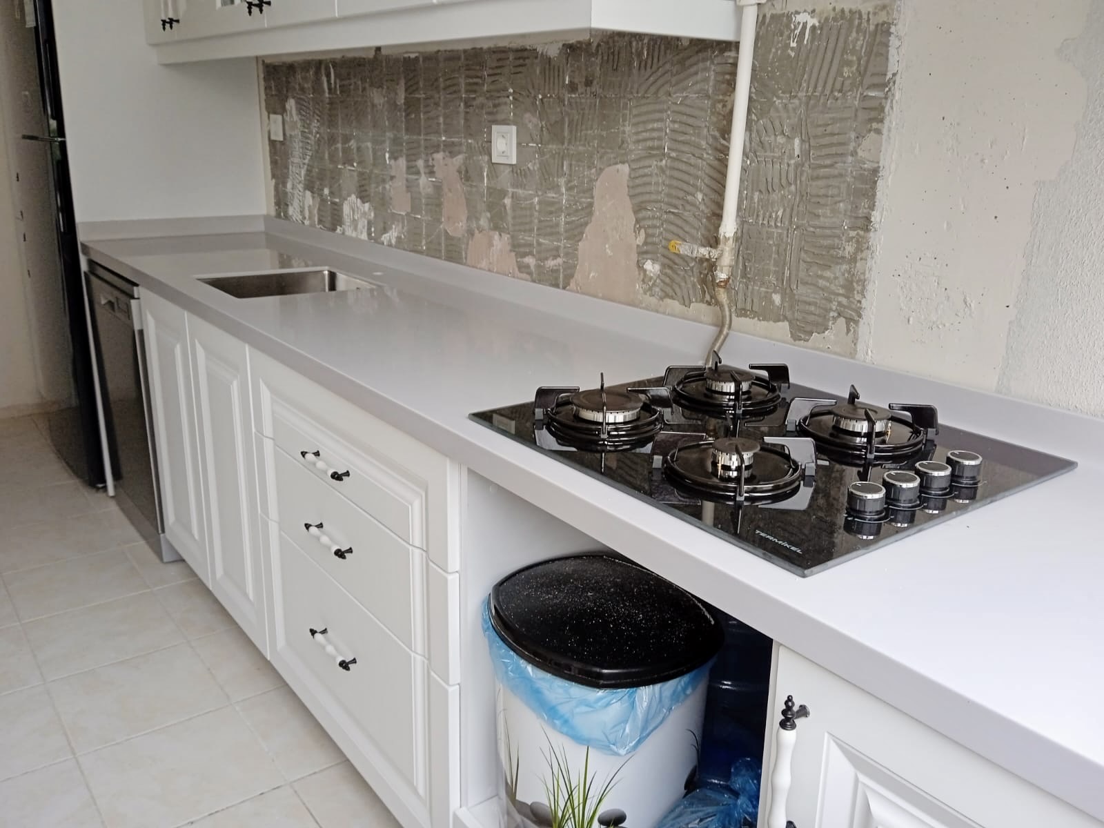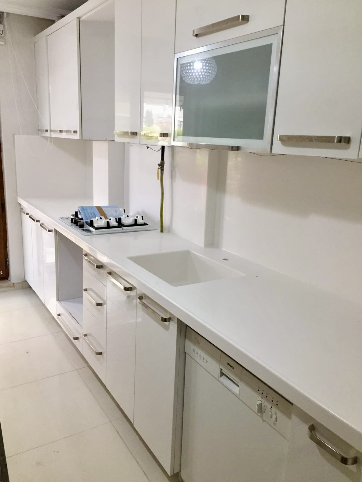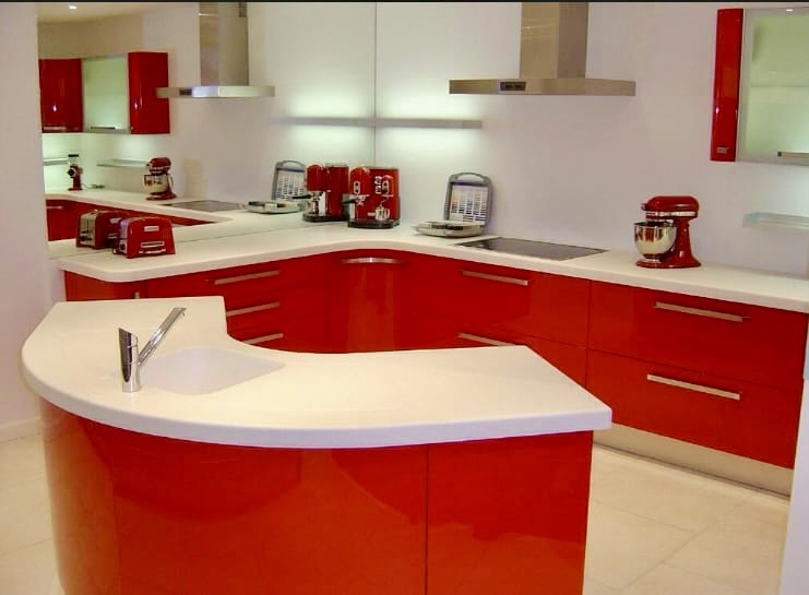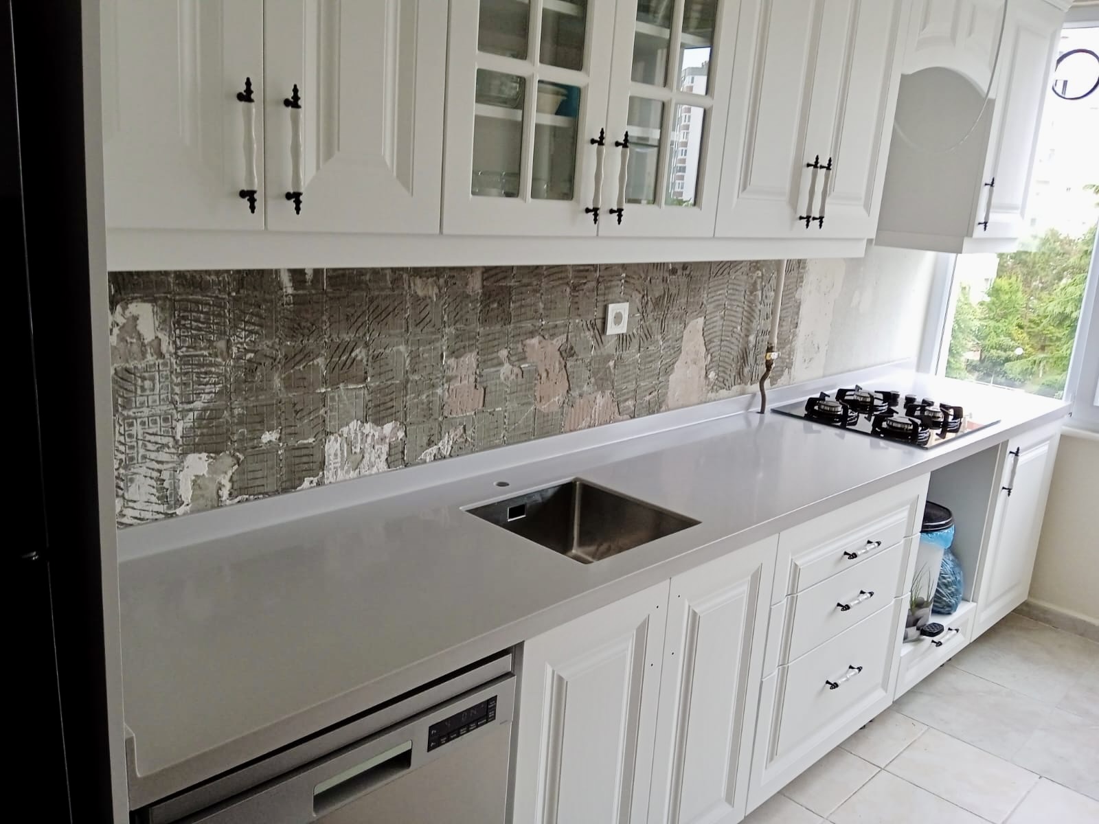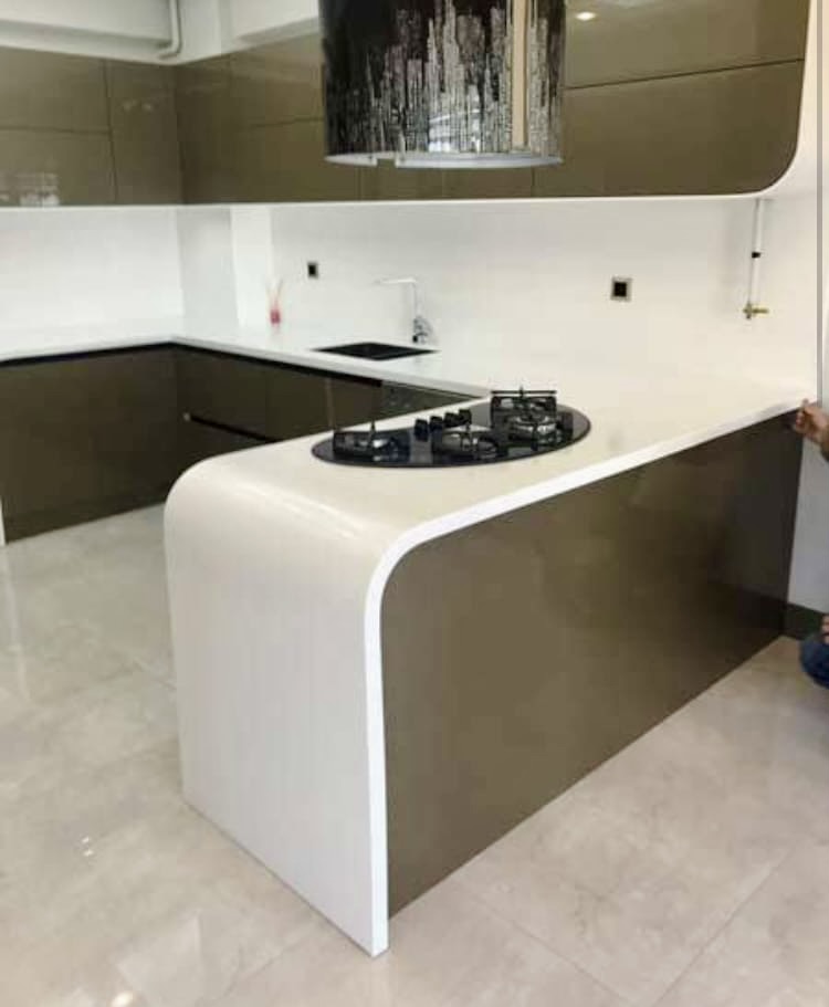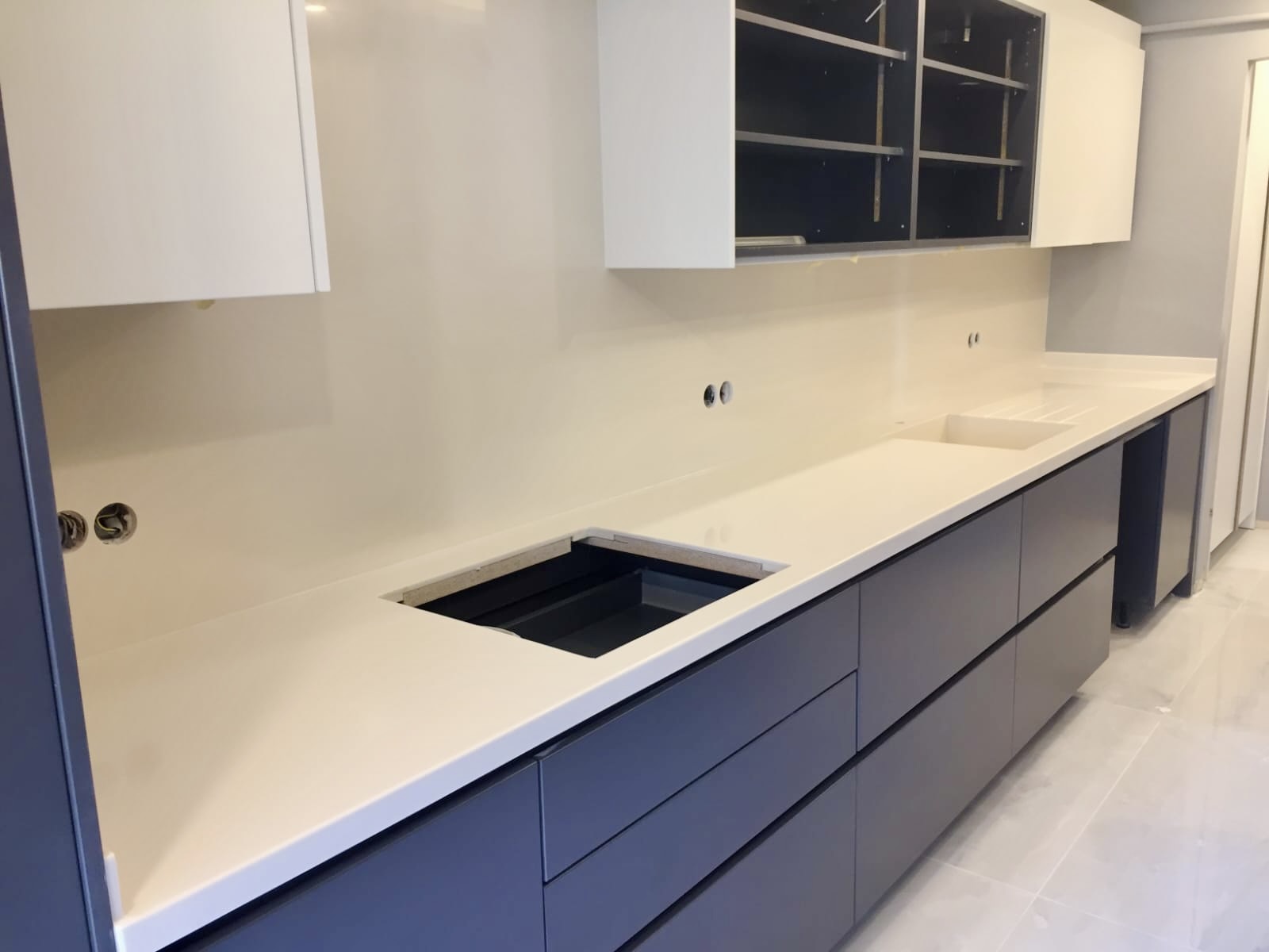 Hem dekoratif hem de anti-bakteriyel bir malzeme olan corian ile ürettiğimiz mutfak tasarımlarından bazıları.