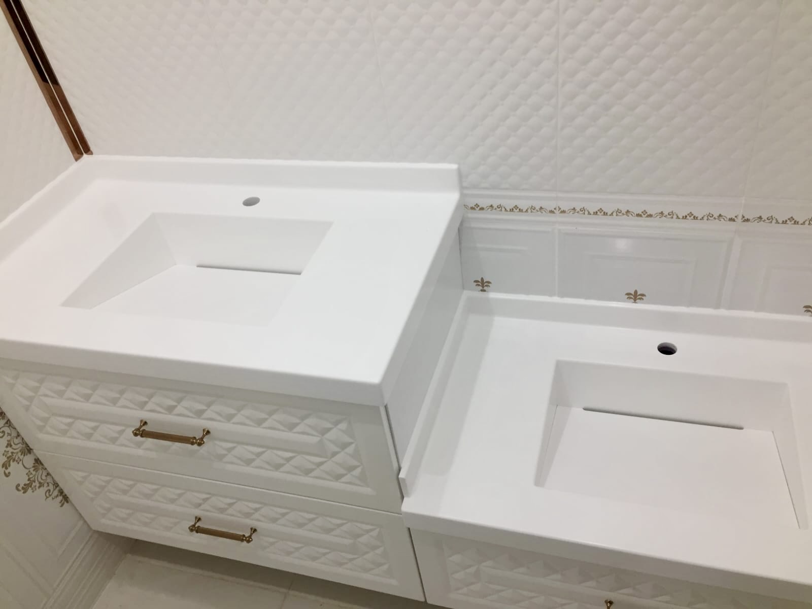 Hem dekoratif hem de anti-bakteriyel bir malzeme olan corian ile ürettiğimiz banyo tasarımlarından bazıları.